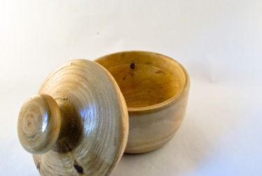 Ciotola con coperchio in legno realizzata a mano diametro cm. 10, altezza cm. 8, finitura lucida a cera non ci sono dettagli